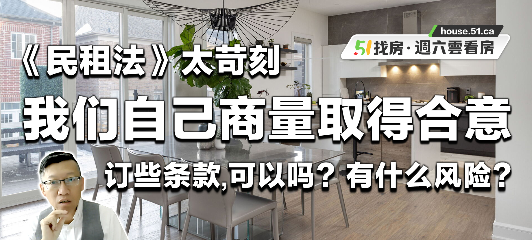 卖房招租,以租养房,好像是很普遍的一种投资方式。但内里细节非常值得关注。现在已经不是“找到租客放进屋,几年能换一金屋”的时代了。提高业务技能,才能处于不败之地,否则投资失利,并非天方夜谭。「51找房」继续邀请安省律师公会认证法律顾问 于戎伟先生,周六直播间中为大家讲案说法。